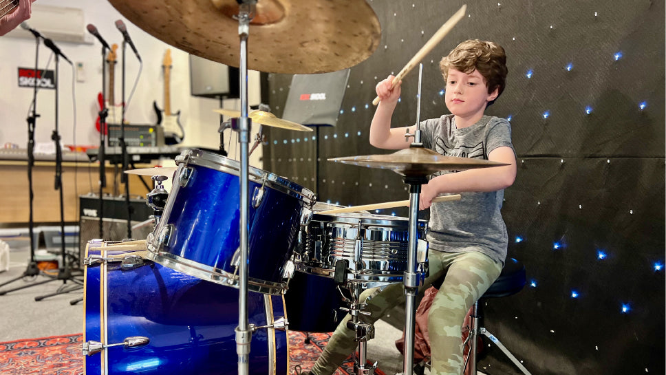 Drum LessonsLet's goBefore a drum kit takes up half your house, come to us and we’ll put you behind a kit and help develop a sense of rhythm with a sets of drum exercises and associated songs. Once you advance you will have the opportunity to join a Rok Skool Band.
