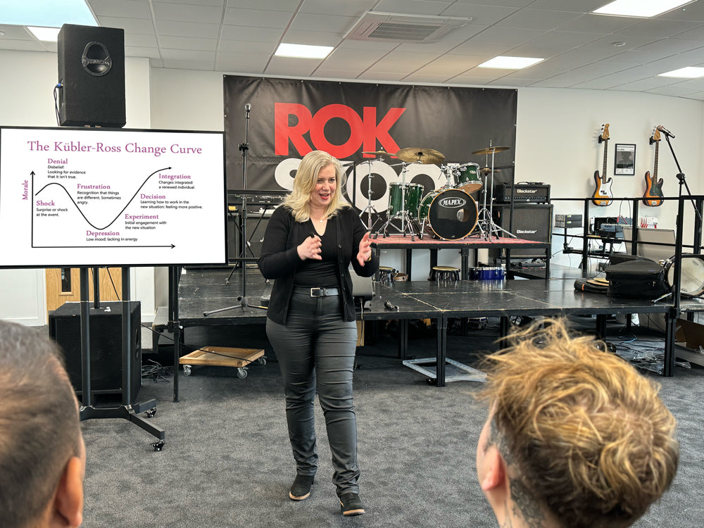 Teams work in their musical sub-groups on one overall musical piece led by different Rok Skool musicians. The sub-groups will come together during various touch points throughout the day. Your team will learn how to identify what works and what does not, how to fail fast and pivot to new opportunities. They will also learn presentation and performance skills and experience different leadership styles in rehearsal sessions. A final performance of the entire team can be recorded.At the conclusion of the day your team will have the opportunity to reflection what has worked well for them and what has not as well as to agree what team action points and takeaways they wish to adopt and implement.